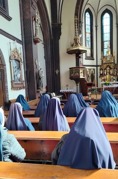W Nowym Bohumínie wróciłyśmy do przeszłości. W parafialnym kościele, w którym modliły się nasze siostry poprzedniczki, rozważałyśmy modlitwę różańcową. Odwiedziłyśmy także Dom Opieki dla osób niepełnosprawnych, który w roku 1934 r. wybudowały Siostry. Dzięki serdecznej życzliwości dyrekcji i pracujących tam osób, mogłyśmy odwiedzić to miejsce, przejść korytarzami…, po których niegdyś chodziły nasze siostry, spiesząc do chorych. Cały personel zwracał się do Sióstr z wielkim szacunkiem i mimo upływu lat nadal uznaje zasługi Sióstr wspominając ich w Bohumíně. Zauważyłyśmy, że na obrzeżach ogrodu znajduje się mała grota, która wymaga pilnej naprawy. Zrodził się pomysł, by tam postawić figurę Matki Bożej, na co dyrekcja z ochotą przyzwoliła. Jest to jeden z owoców wizyty!