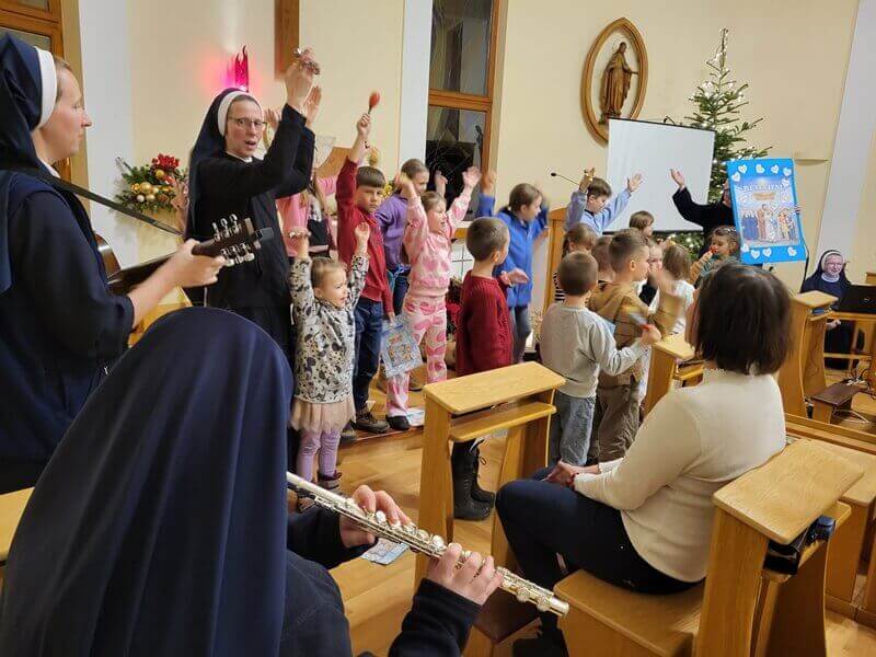 20 stycznia 2026 r. w domu generalnym naszego Zgromadzenia we Wrocławiu odbyło się kolędowe spotkanie Edmundowe. Jak zwykle uczestniczyły w nim całe rodziny i wszyscy, którzy mogli i zechcieli przyjść. Drzwi zawsze są otwarte dla każdego. Tym razem, jeszcze w blasku światełek na choinkach i prostego żłóbka, w bliskości ołtarza śpiewaliśmy radosne kolędy.
