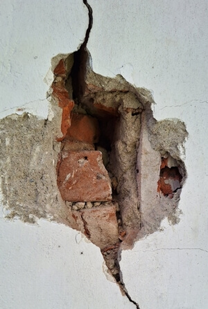 - głębokie pęknięcia na ścianach stwarzają realne zagrożenie katastrofą budowlaną,