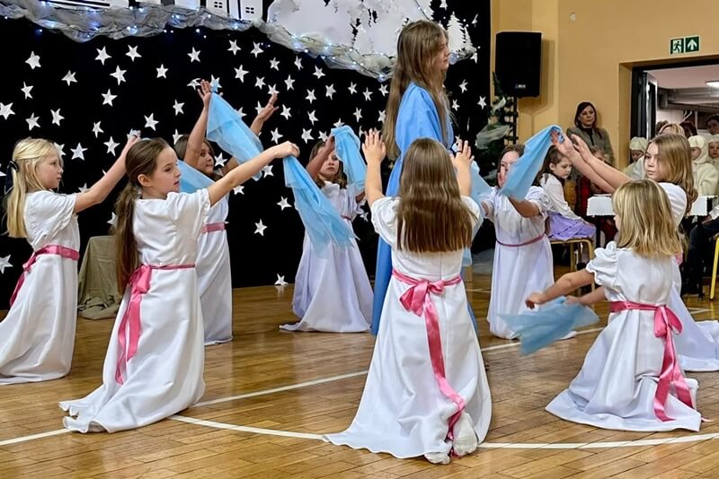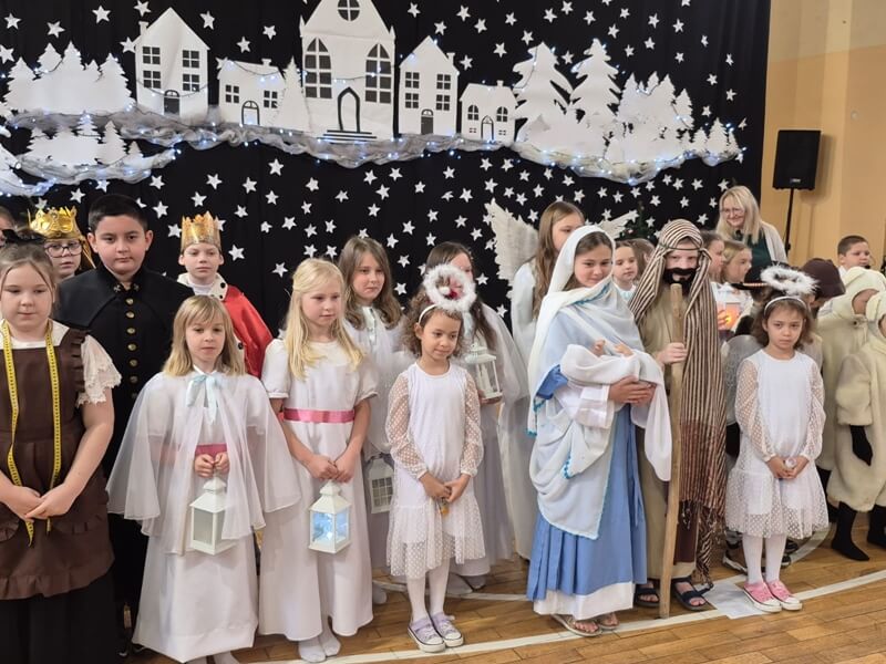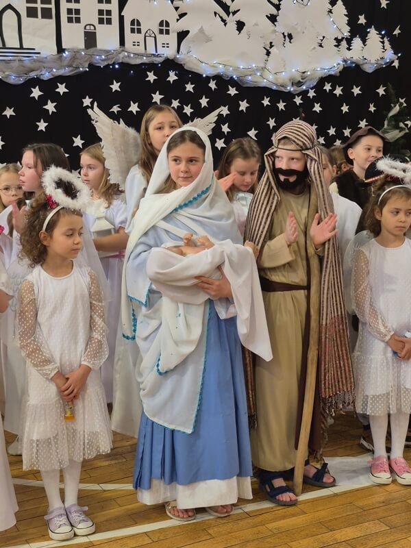 To nie była tylko gra na scenie – to było przesłanie niosące nadzieję, czas na głęboką zadumę i refleksję nad swoim życiem, miłością Boga do człowieka, nad wartością rodziny, a także przypomnieniem istoty świętowania. Jasełka wprowadziły uczniów, nauczycieli i gości w piękny, świąteczny nastrój pełen kolęd, wzruszeń i radości.